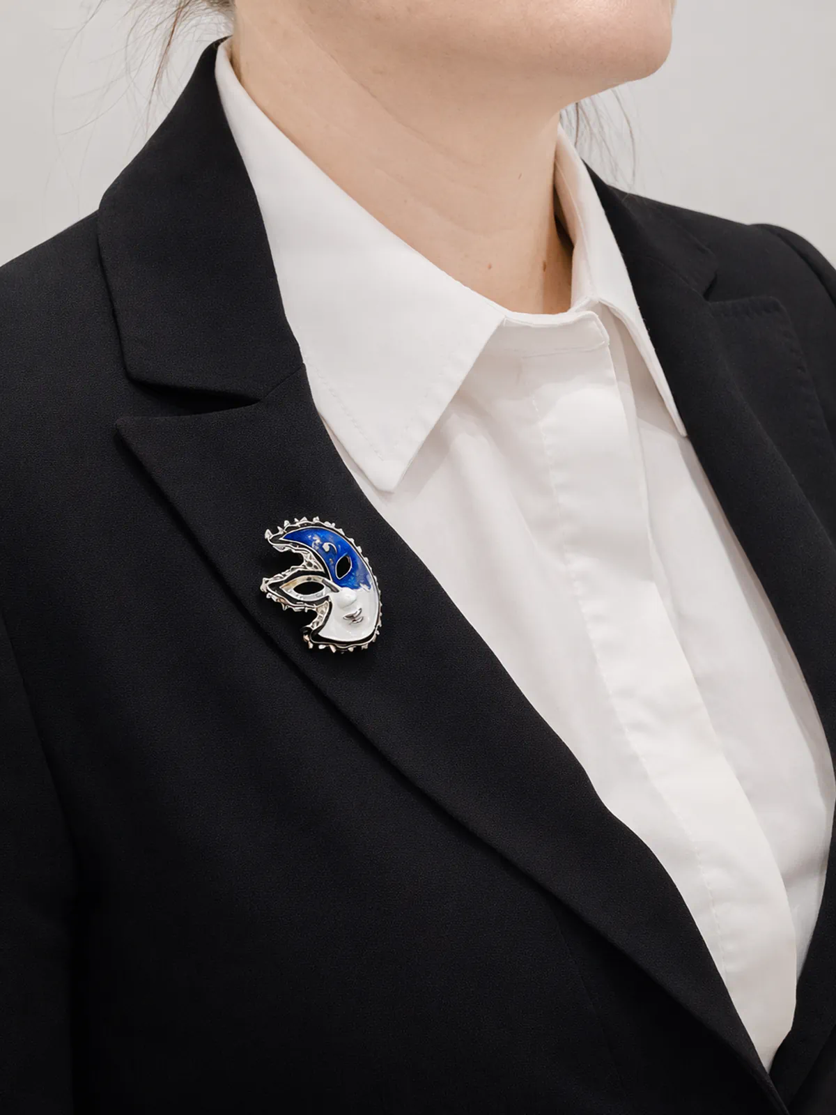 Стильное украшение, которое привносит в образ нотку театральной загадочности. Четкие линии и узнаваемая форма делают аксессуар заметным и запоминающимся.