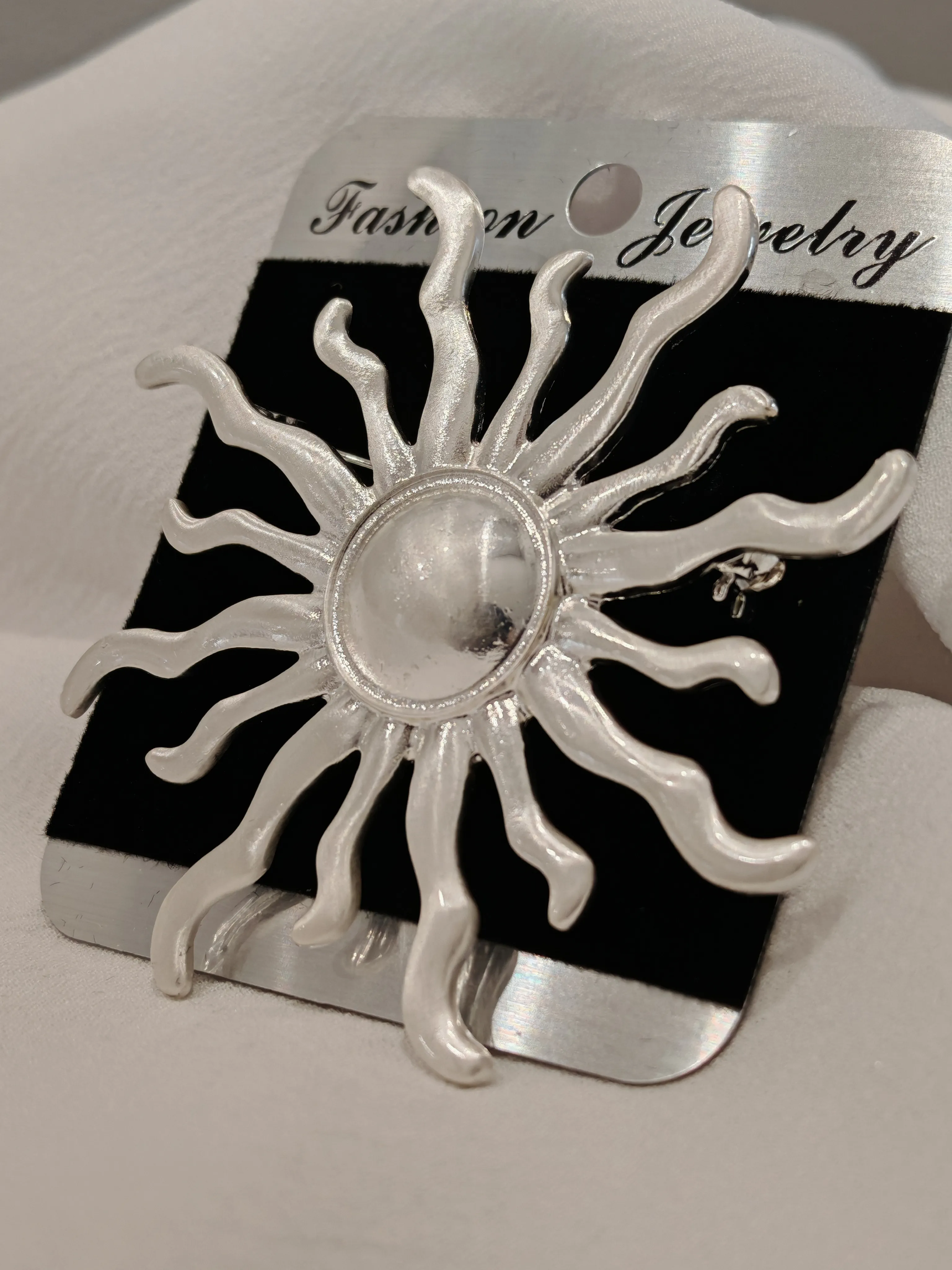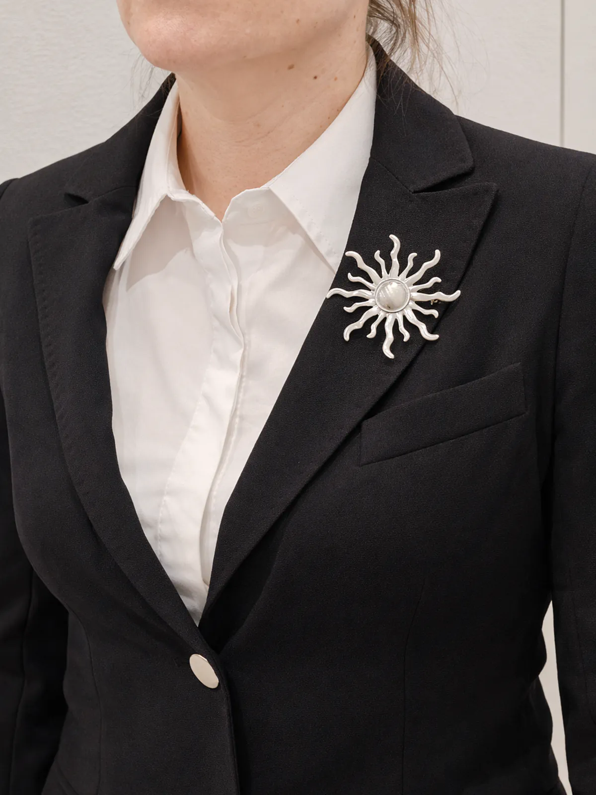 Солнце — символ жизненной силы и успеха. Универсальный подарок-пожелание процветания или ваш личный источник энергии и оптимизма в каждом дне. Дизайн с плавными изогнутыми лучами делает брошь живой и заметной. Акцентная деталь для жакета, пальто или плотной рубашки.